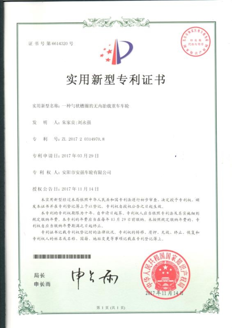 專利證書(shū)(專利號(hào):ZL201720314970.8)